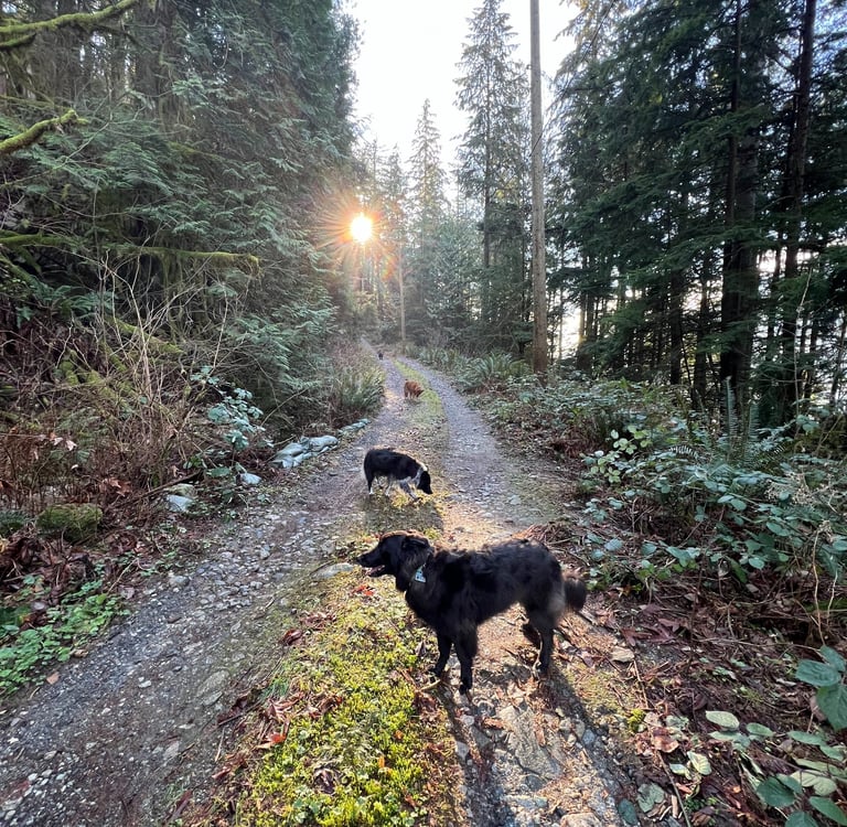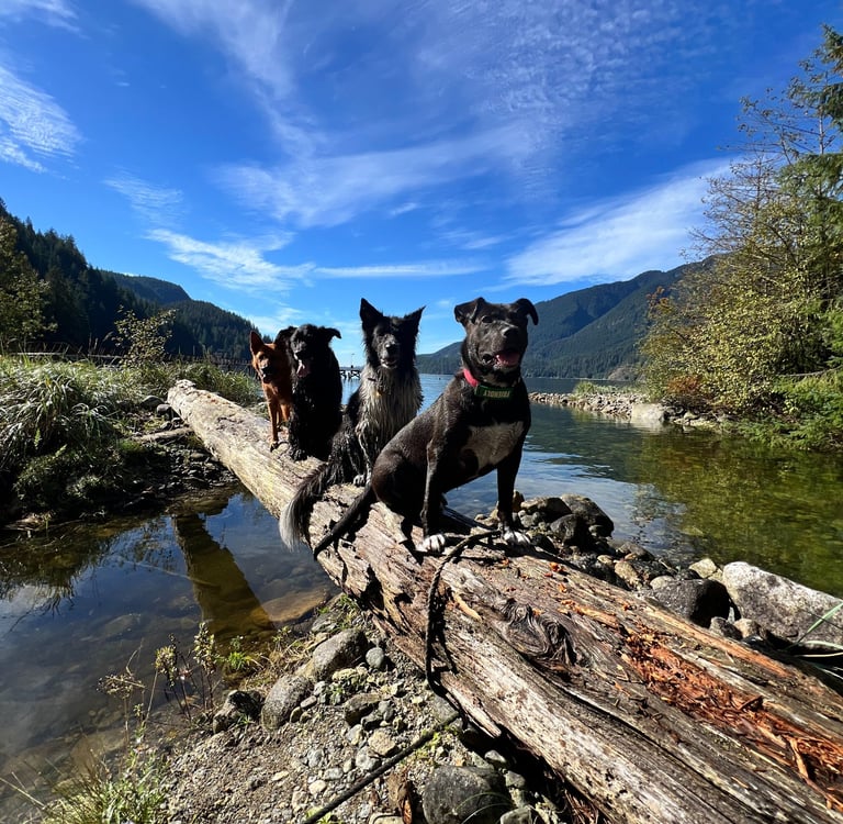 Relief dog walking services, including solo and off-leash group adventures are available for clients in the TriCities and immediate surrounding areas (Coquitlam, Port Coquitlam, Port Moody, Anmore and Belcarra).